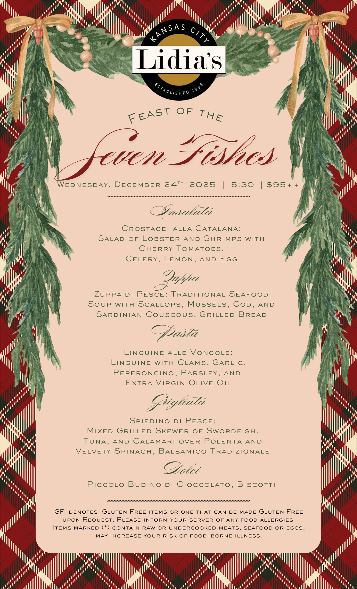 Join Us on Wednesday, December 24th at 5:30 for our annual Feast of the Seven Fishes.